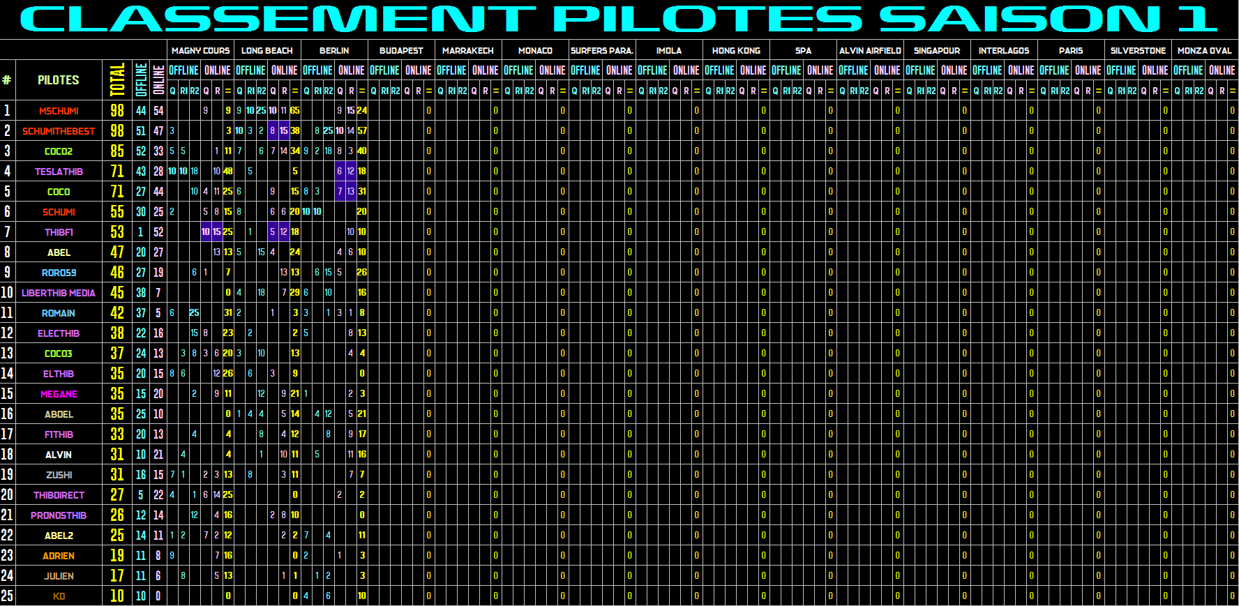 CLASSEMENT PILOTES |
